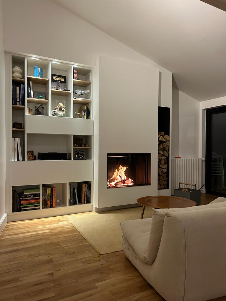 Nous pensons votre cheminée comme un véritable meuble architectural. Nous créons autour d’elle des agencements sur mesure qui allient fonctionnalité et esthétisme :