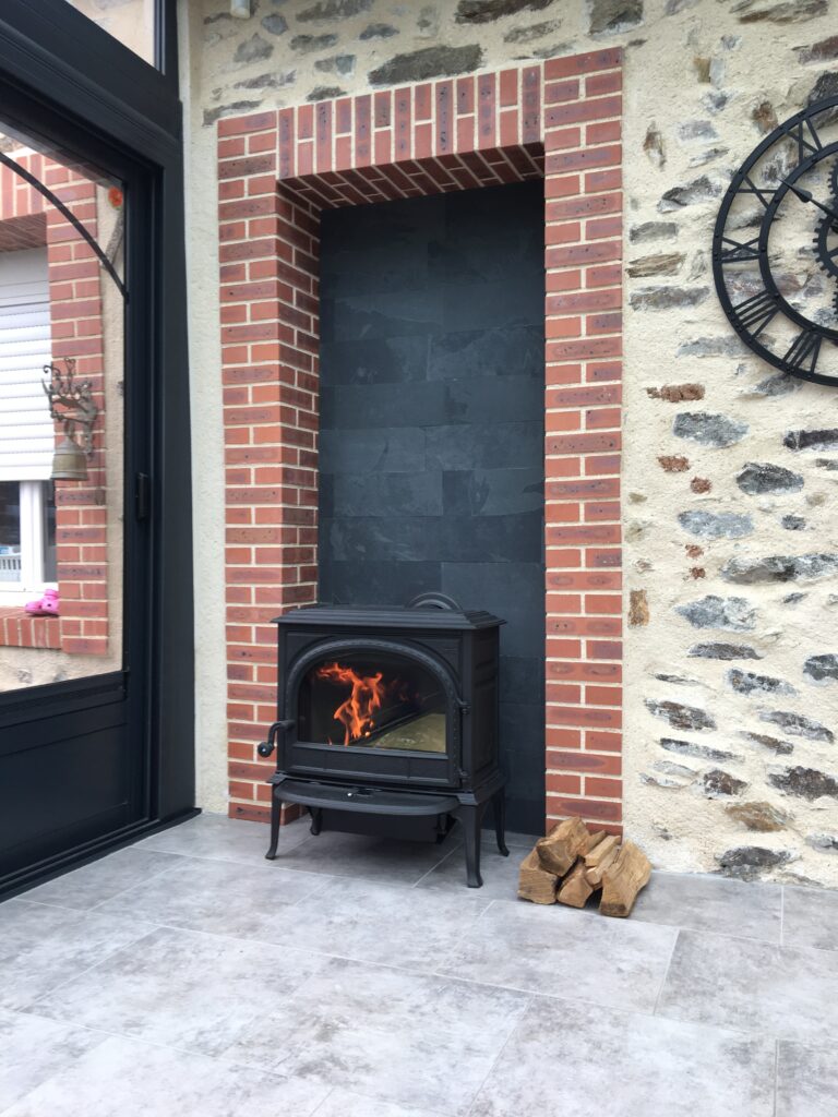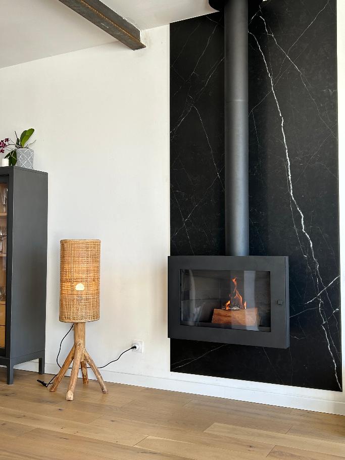 Chez Noyer Intérieur, chaque détail compte pour créer un espace qui vous ressemble et qui soit unique. Nous proposons de mettre en avant votre poêle avec de la céramique posée en arrière-plan ou en habillage. Brillante ou mate, lisse ou texturée, sobre ou expressive, elle met en valeur la verticalité du poêle et transforme votre intérieur en un lieu chaleureux, élégant et singulier.